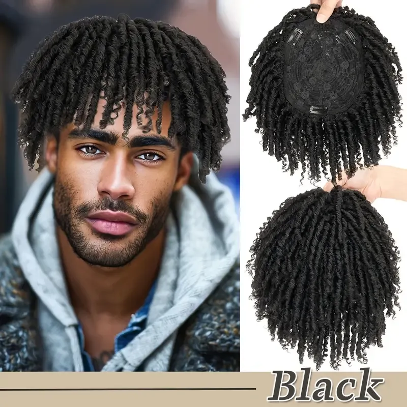 1pc Unisex Afro Curly Kinky Dreadlocks Hair Topper - Handmade Crochet Braided Clip-In Hair Extensions, Synthetic Faux Locs Toupee, Reggae Punk Dreads Wiglet, Hairpiece for Thinning Hair, Black Brown
