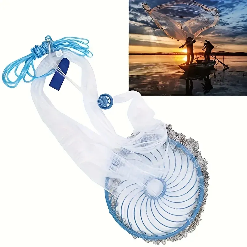 Durable Nylon Fly Fishing Net 1pc - Blue Handle Ideal for Freshwater & Saltwater - Perfect for Catching Fish, Shrimp, and Bait Trapping